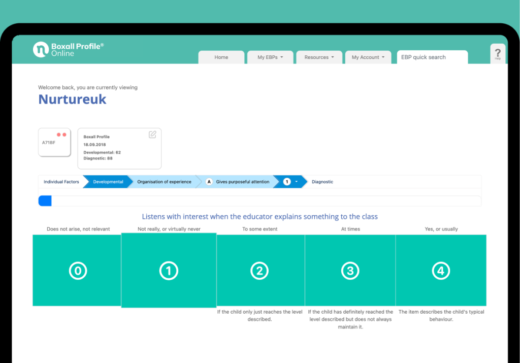 The award-winning Boxall Profile® Online is the first step along the graduated approach to nurture and is the best way to identify and address hidden issues, ensuring that every child and young person gets the support they need to unlock their ability to learn. The combination of the assessment tool and the graduated approach helps to build a nurturing and supportive environment, ensuring that children and young peoples emotional and social wellbeing is addressed effectively throughout the different levels of support.